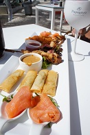 2 – Papagayo, recomendo o Pincho de Sangria (1,5l), Asian Bites (um menu degustação com salmão, frango com satê, camarão empanado, rolinho primavera e rosbife) e Club Sanduich = U$60
