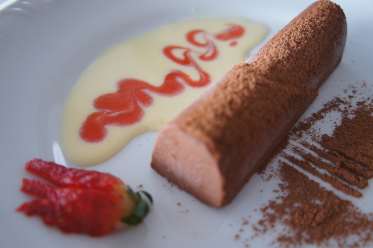 O café da manhã era farto, bolos, pães, crepes, waffles, frutas, ovos, sucos, leite, café e até champagne.